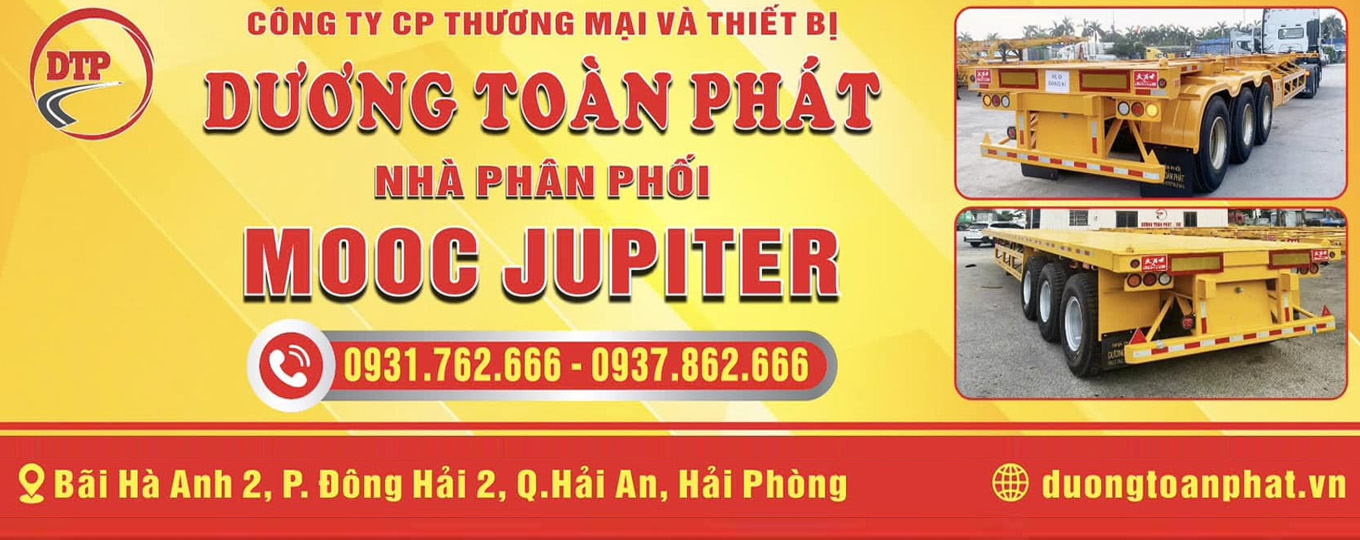 DƯƠNG TOÀN PHÁT- là kết quả của hơn 5 năm kinh nghiệm trong việc xây dựng các phương tiện và xe kéo đặc biệt. JUPITER là một phần của tập đoàn JUPITER nổi tiếng và được hưởng lợi từ bí quyết lớn và cơ sở hạ tầng sản xuất hàng đầu. Các sản phẩm chính làSkeleton Semi Trailer, Flatbed Semi Trailer, Lowbed Semi Trailer, Dump Semi Trailer, Oil Tanker Semi Trailer, Xe tải Sinotruk Howo, v.v.